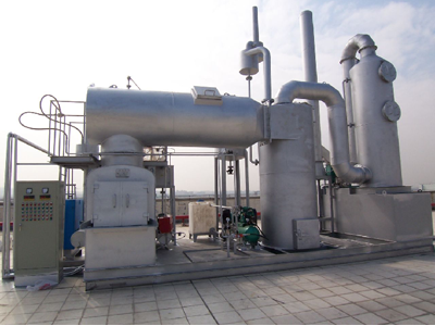2.經(jīng)過高溫焚燒后的煙氣,進(jìn)入帶有集塵器的余熱回收裝置,進(jìn)行除塵處理。經(jīng)過除塵處理后的煙氣,10um以上顆粒浮塵得以早先攔截處理。